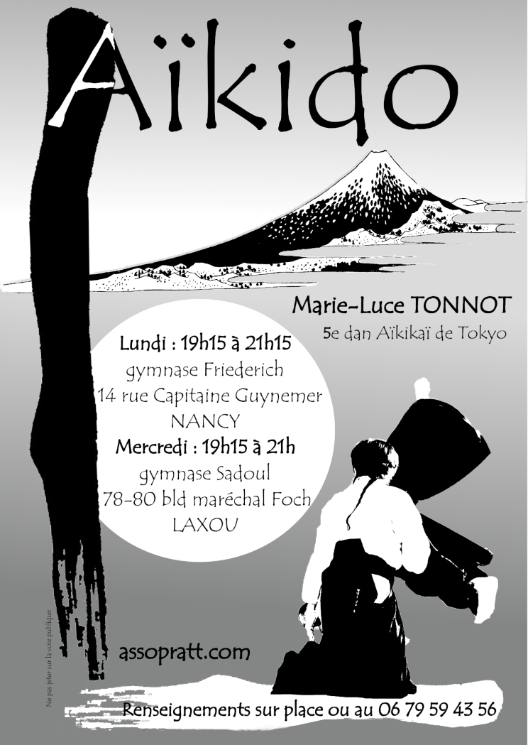 Les cours d’aïkido traditionnels sont dispensés par Marie-Luce Tonnot, (5ème Dan Aïkikaï de Tokyo et titulaire du Brevet Fédéral de la Fédération Française du Sport Travailliste). Ils sont ouverts à tous, tous niveaux confondus.