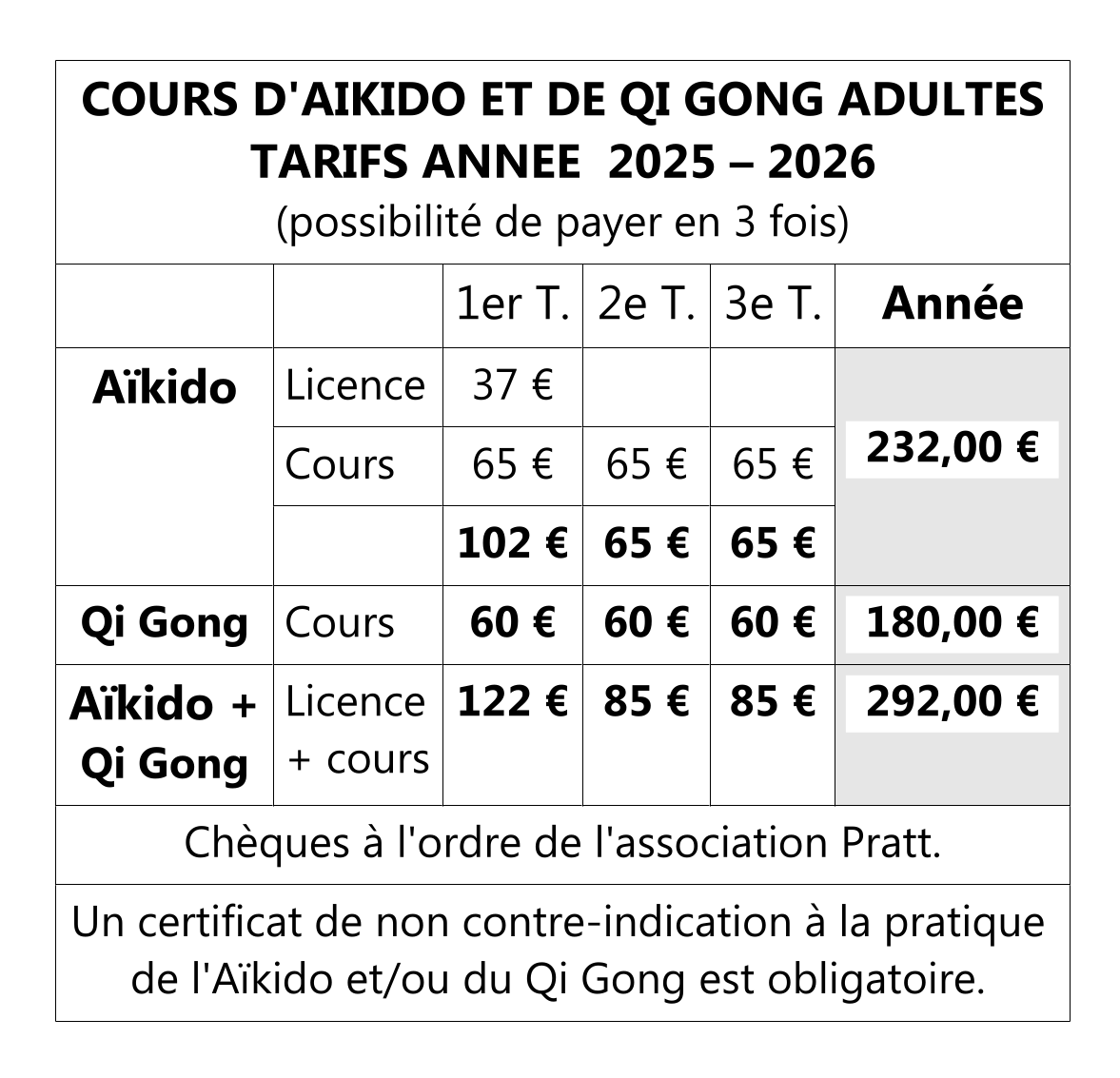 Lors de votre inscription, veuillez remplir le questionnaire de santé (ici) et l’attestation de santé (ici) ou fournir un certificat médical de non contre-indication à la pratique de l’aïkido.